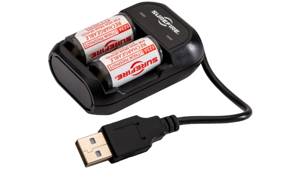 The SFLFP123-KIT is the perfect solution for customers who prefer to use rechargeable 123A cells when powering SureFire illumination tools, including WeaponLights and hands-free lights. While they lack the capacity of SureFire 123A lithium primary cells, SFLFP123 cells are safe to use, cost-effective, and they retain approximately 80% of their original capacity even after hundreds of charging cycles. The included smart charger can fully charge two batteries in three hours, in the convenience of your home, office or vehicle. Note: Do not use rechargeable LFP 123A batteries with incandescent illumination tools.![]()