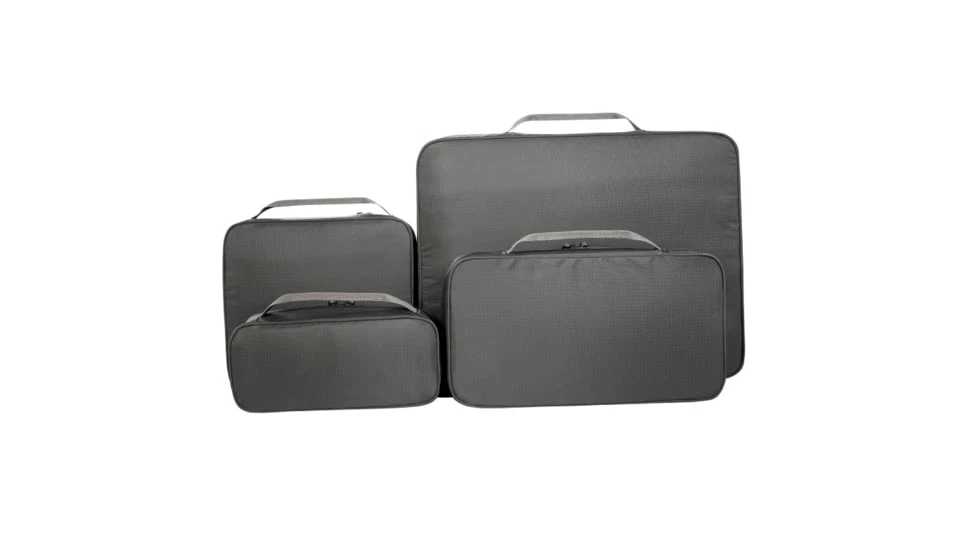 Packable cubes in a set of four zipped pouches. The three smaller ones can fit perfectly next to the large pouch as they have the same surface area when arranged togetherCan easily be packed in a travel bag or backpack.![]()
